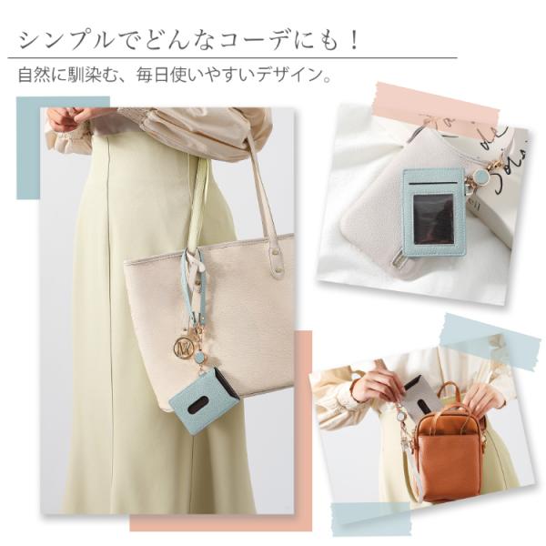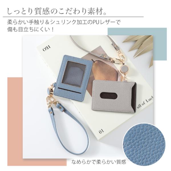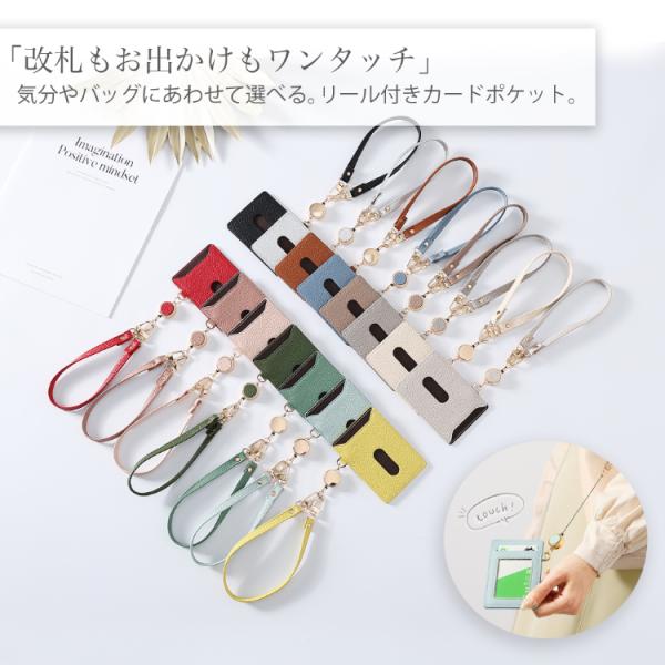 パスケース リール付き カードケース ストラップ付き コンパクト シンプル 推しカラー