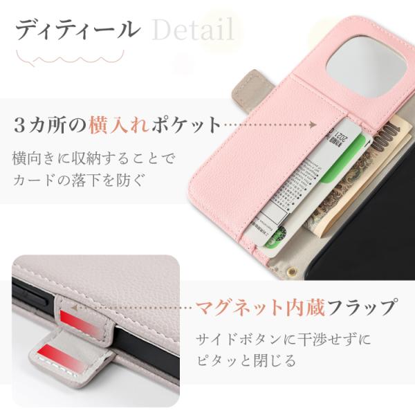 3ヵ所のポケットはカードの落下を防ぐ横向き収納