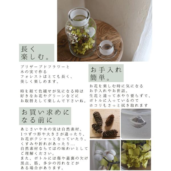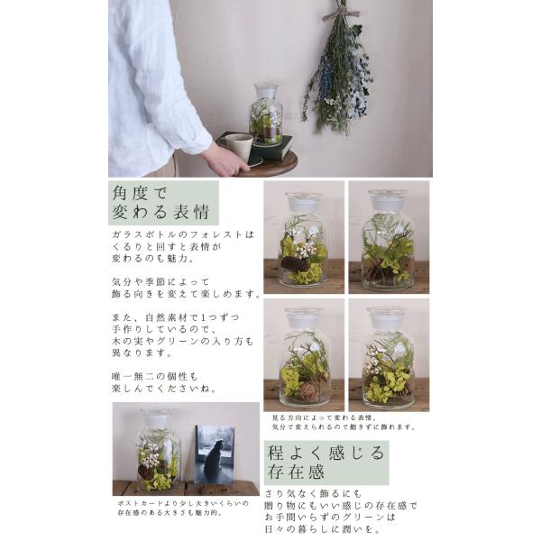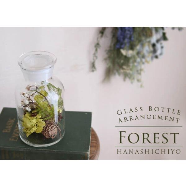 フォレスト * ガラスボトルアレンジ / プリザーブドフラワー グリーン モダン ボタニカル インダストリアル 薬瓶 メディシンボトル