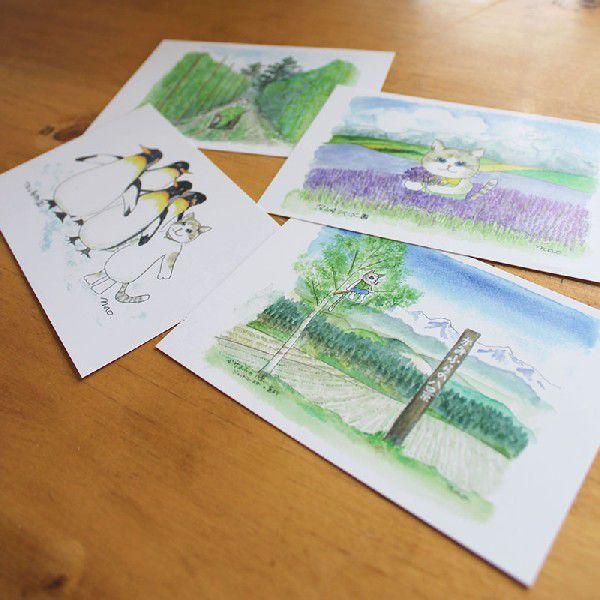 保護活動をされているナオコさんデザインのポストカード。1枚あたり100円が犬猫の保護団体に寄付されます。※カードのみをご購入の場合メール便での発送が可能です。