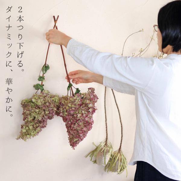 枝付なのでフラワーベースに活けたり壁から吊るしたり、飾り方はいろいろ。