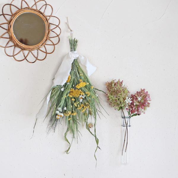 ちょこっと一輪挿しやフラワーベース、バスケットに挿したり、そのまま壁につり下げたり、ナチュラルな北欧インテリアなどにピッタリ♪