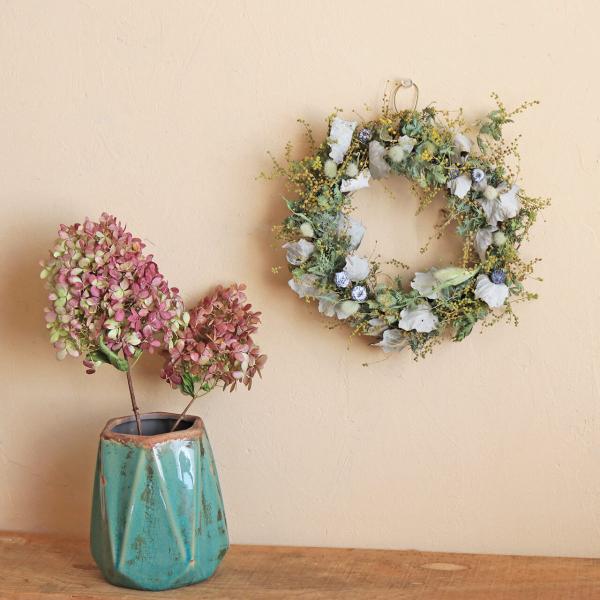 枝付なのでフラワーベースに活けたり壁から吊るしたり、飾り方はいろいろ。