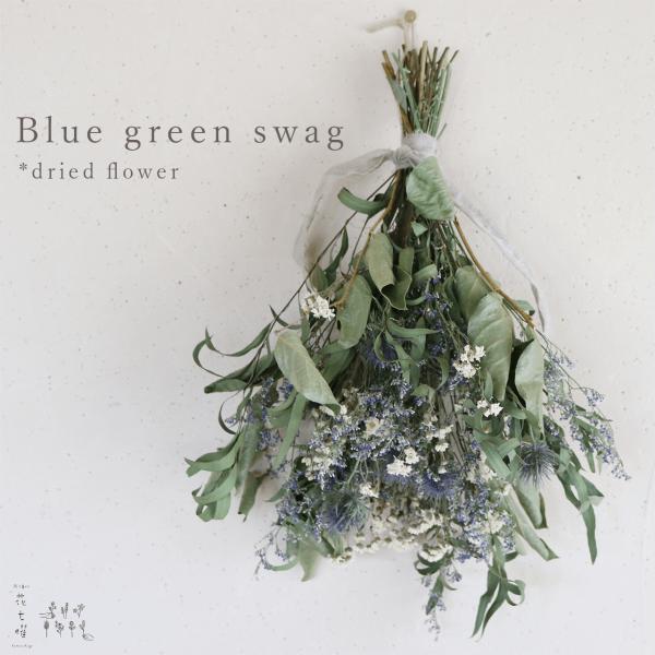ブルーグリーンスワッグ ドライフラワー * エリンジュームのシックなブルーにユーカリのグリーン アキレアのキナリがアクセント