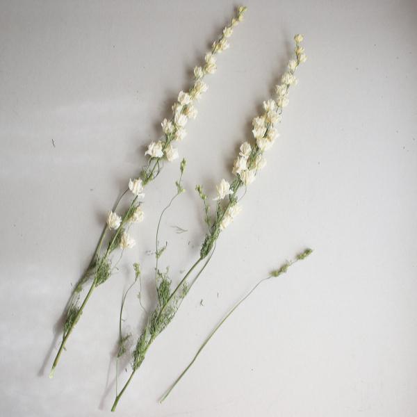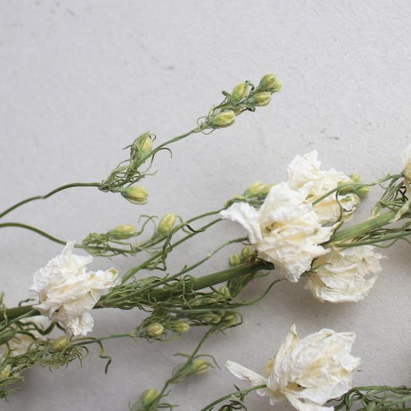 ふわふわ白いドレスのようなラークスパーのドライフラワー