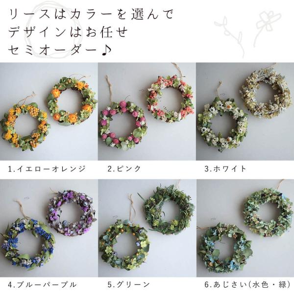 リースは花七曜のこだわりのドライフラワーで1つずつ丁寧にお作りしています。