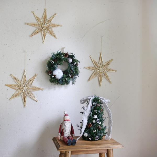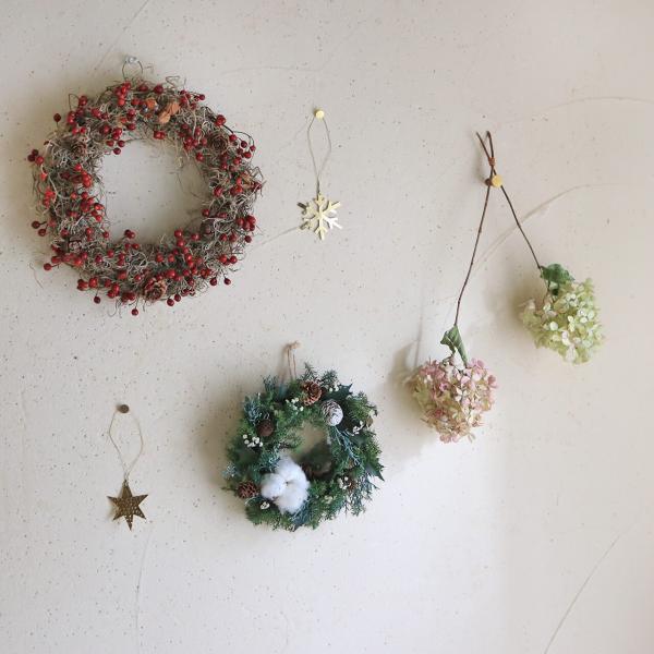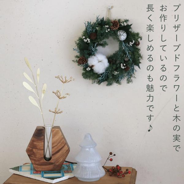 クリスマスリースに綿の実と木の実のプリザーブドフラワーリース