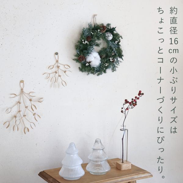 プリザーブドフラワー約直径16cm*白い綿の実と針葉樹のリース * クリスマスリース * フラワーリース 冬 秋 北欧インテリア かわいい おしゃれ クリスマス飾り