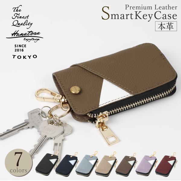 キーケース 本革 スマートキー 車 レディース メンズ ハーフファスナー カード 収納 ポケット カードポケット プレゼント ギフト レザー 高級 ブランド HANATORA
