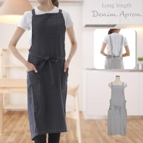ロング丈 デニム エプロン 店舗 保育士 料理 介護 カフェエプロン レディース メンズ ユニセックス 肩紐タイプ p532
