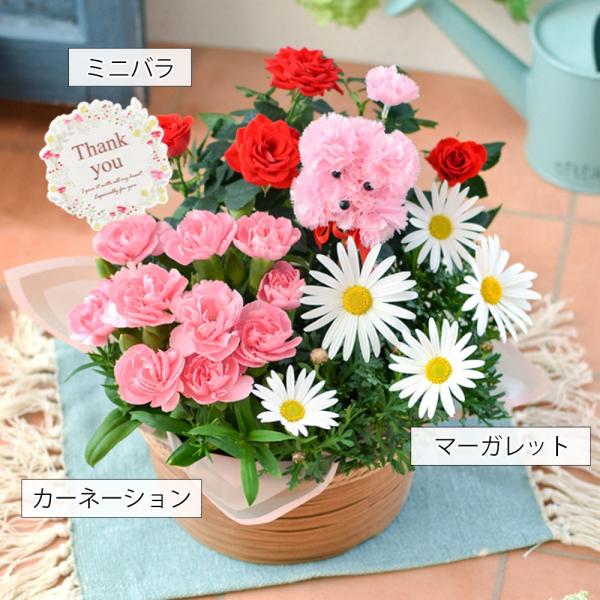 特早割 母の日 花 2026 鉢植え カーネーション プードルの寄せ鉢 ミニバラ マーガレット 犬 寄せかご 花籠 フラワーギフト 母の日ギフト 送料無料 5/5〜5/10届け