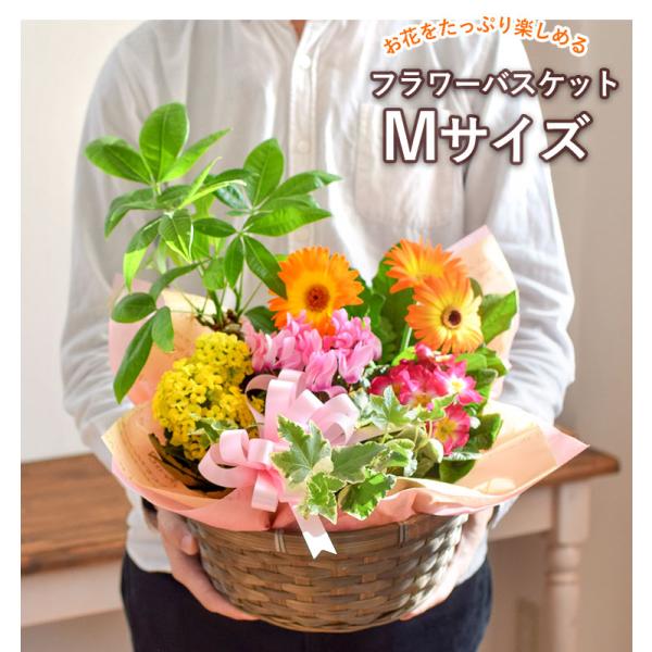 季節のおまかせ 花鉢 とグリーンの寄せ入れ Mサイズ フラワーバスケット 鉢植え 鉢花 フラワーギフト お誕生日 花 誕生日 プレゼント 女性 記念日