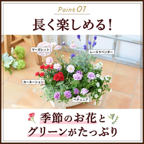 (カーネーション・マーガレット・レースラベンダー・ペチュニア)