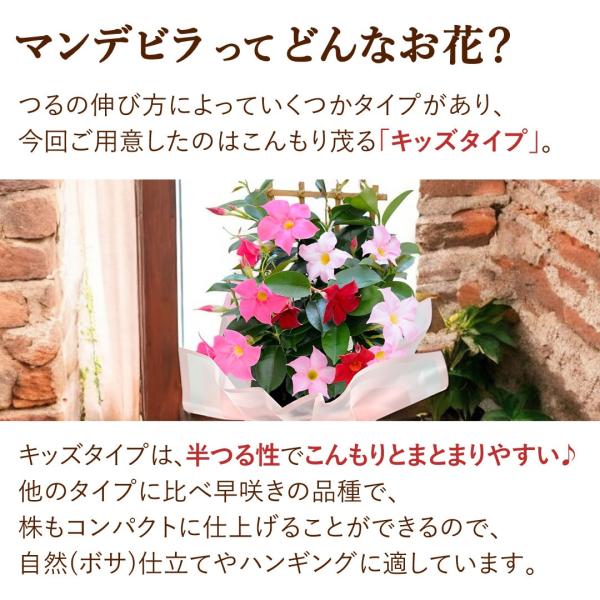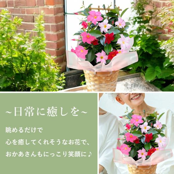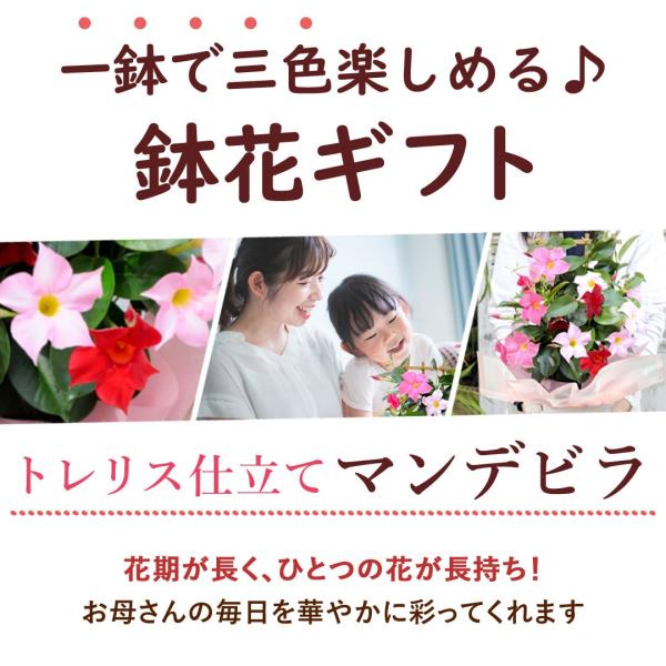 特早割 母の日 2026 花 鉢植え マンデビラ 3色の花が咲く トレリス 多年草 花鉢 鉢花 ギフト 珍しい 耐暑性 育てやすい 長持ち カーネーション以外 母の日ギフト