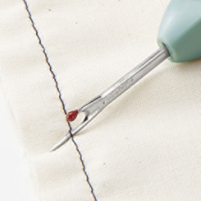 糸をすくいやすい先端形状です。はさみでは切りにくいミシンの縫い目の糸切りに便利です。
