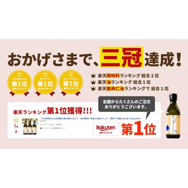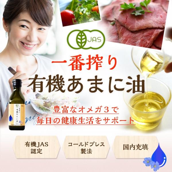 [4/13から順次出荷予定] アマニ油 亜麻仁油 有機JAS認証 ハンズ 一番搾り 有機あまに油 190g(200mL) × 3本セット オーガニック オメガ3 低温圧搾