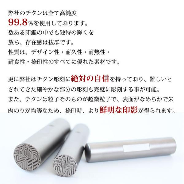 弊社のチタン 印鑑は全て純チタンを使用しております。