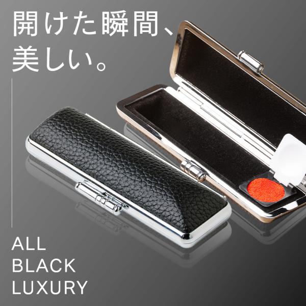 内側はブラックベロア調素材を採用。印面を汚れや衝撃から守り、美しい印影を保ちます。朱肉付きで実用性にも優れています。
