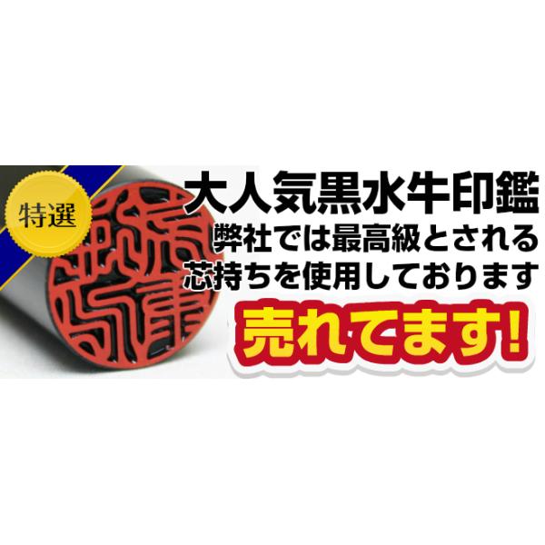 黒水牛芯持は、耐久性・硬度・粘りにも優れ、篆刻には大変に適した材質です。芯に最も近い部分で、この芯もち部分を使用した黒水牛印鑑は最高級と言われています。