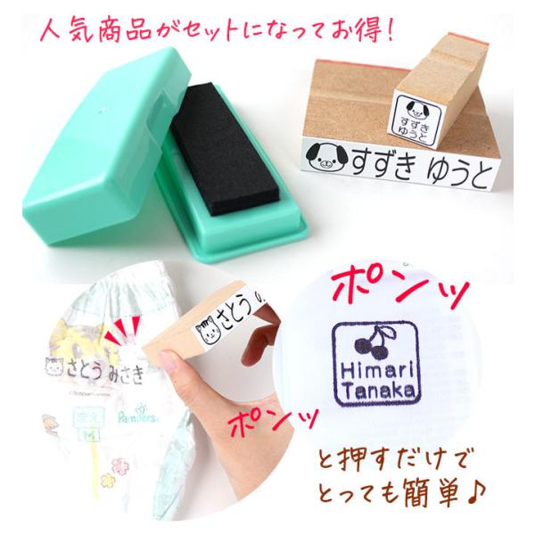 オムツ用+タグ用 お名前スタンプ おむつスタンプ マルチインク付 送料無料 入園準備 入学準備 出産祝い お名前はんこ おなまえ スタンプ アイロン不要 服 布