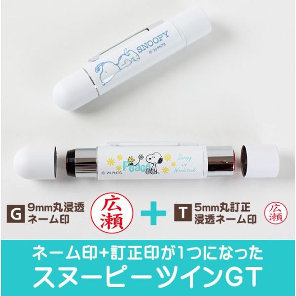 スヌーピー ツインGT ホワイト 送料無料 印+訂正印 印鑑 ハンコ はんこ 浸透印 ネーム印 認め印 かわいい スタンプ ナース 9mm 5mm タニエバー