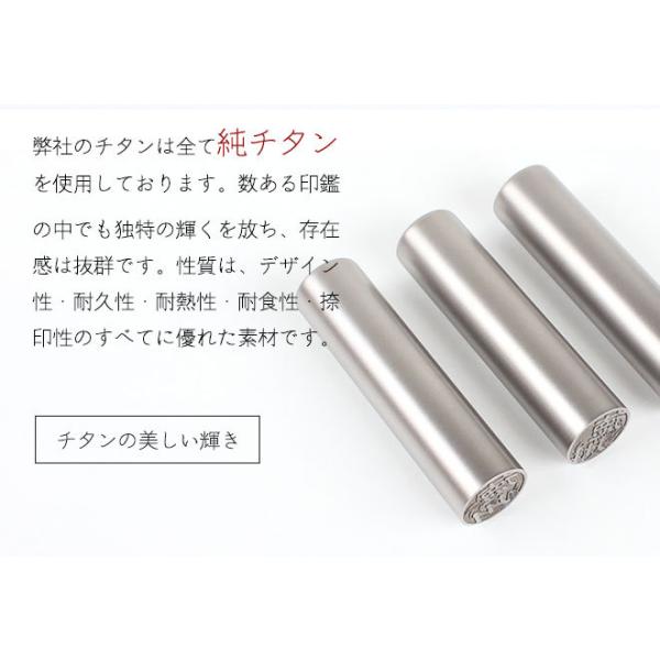 弊社のチタン 印鑑は全て純チタンを使用しております。数ある印鑑の中でも独特 の輝きを放ち存在感は抜群です。
