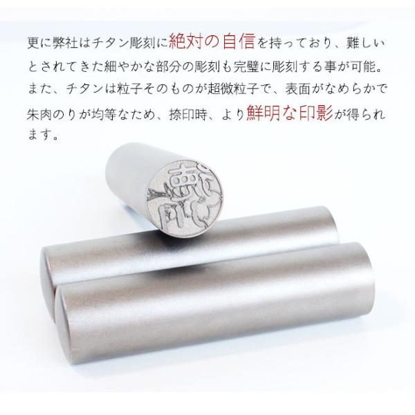 また、チタンは粒子そのものが超微粒子で、表面が滑らかで朱肉のりが均等なため、捺印時、より鮮明な印影が得られます。