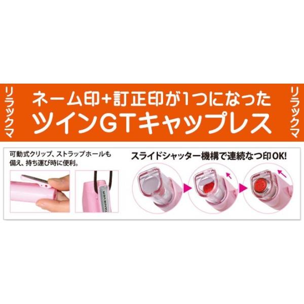 リラックマ ツインGT キャップレス 送料無料 印+訂正印 印鑑 ハンコ はんこ 浸透印 ネーム印 認め印 かわいい スタンプ ナース 9mm 5mm タニエバー