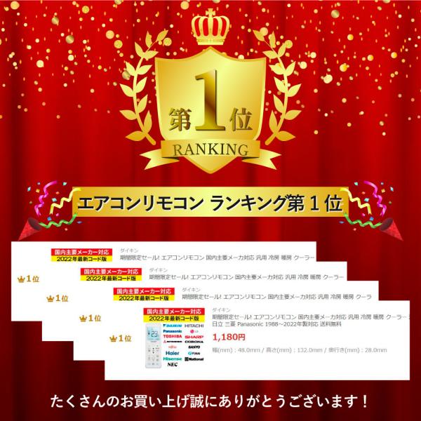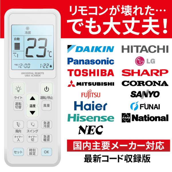 エアコンリモコン 国内主要メーカ対応 設定不要 ダイキン 日立 Panasonic 東芝 その他汎用 冷房 暖房 クーラー 液晶バックライト 1988〜2022年製対応 送料無料