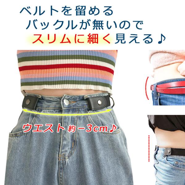 ベルトを留めるバックルがないので、ウエスト約3cmスッキリスリムに細く見えます♪