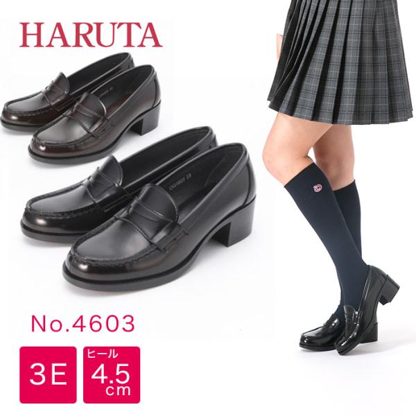 HARUTA ローファー4603/幅広3E ヒールアップ 黒 茶 ハルタ レディース 女子 女の子 女子高生 通学 通勤 合皮 日本製 ブラック ワイド EEE