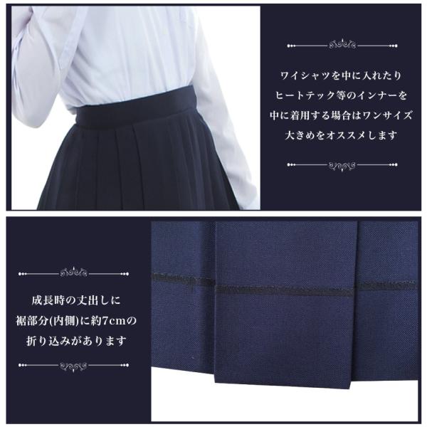 スクールスカート 24本車ヒダ 丈42~57cm ウエスト57~100cm アジャスター 膝丈 膝上 ミニ 制服 学生 プリーツスカート 紺 ネイビー 大きいサイズ対応