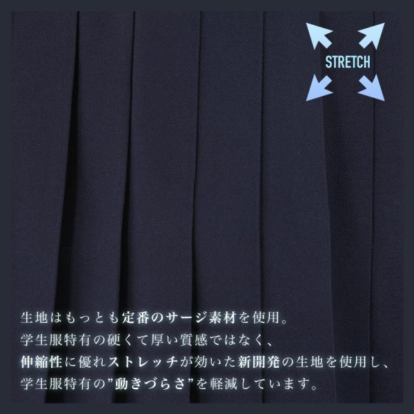 ・学生服特有の硬くて分厚いゴワゴワした質感ではなく、伸縮性に優れストレッチが効いた新開発の生地を使用し”動きづらさ”を軽減しています。