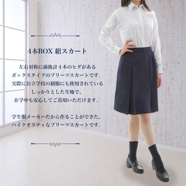 スクールスカート 4本BOXヒダ 丈42~57cm W57~100cm アジャスター ウォッシャブル 撥水 膝丈 膝上 制服 学生 4BOX プリーツ 紺 ネイビー 大きいサイズ対応