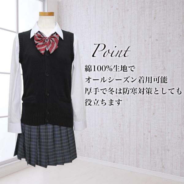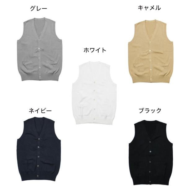 【SALE!】綿スクールベスト S~6L 厚手 男女兼用 前開き スクールニット メンズ レディース 紺 黒 白 グレー ベージュ 大きいサイズ対応