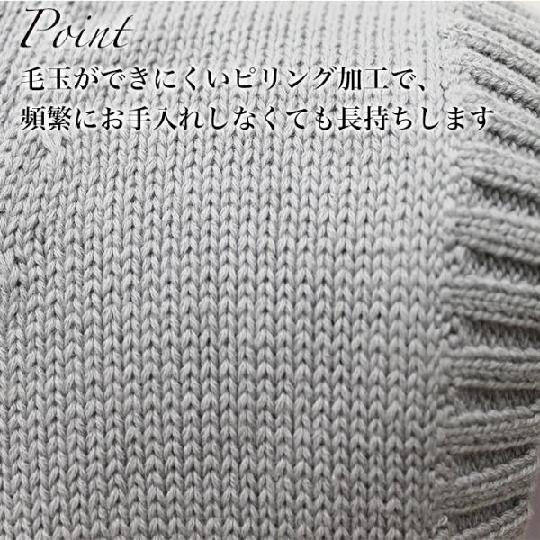 綿100%なので毛玉ができにくく、頻繁にお手入れする必要がありません。綿素材ですが厚手で、冬は防寒対策としても役立ち、一年中着用することができます。