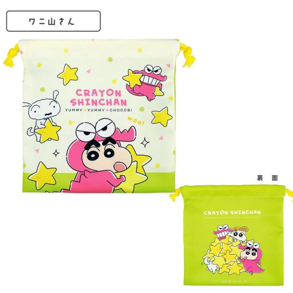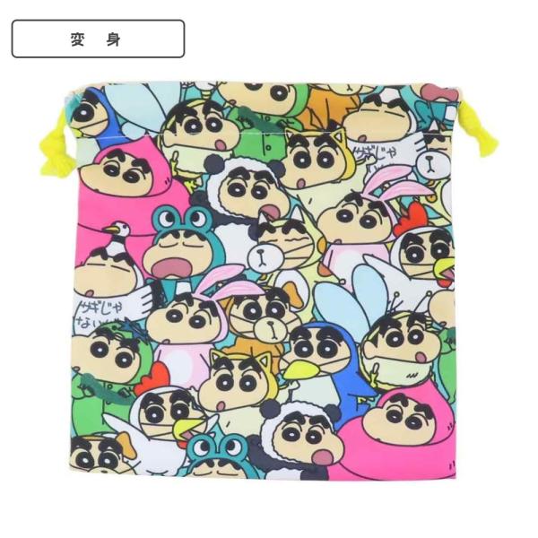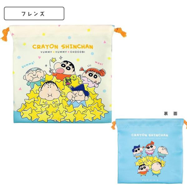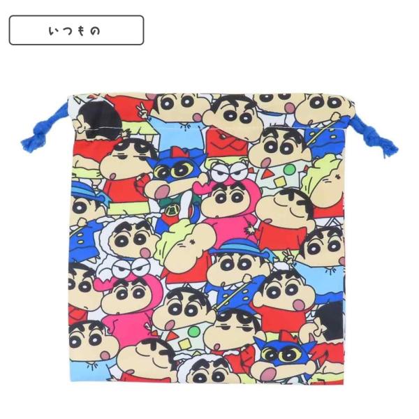 クレヨンしんちゃんのかわいい絵柄が目を引く巾着袋です。