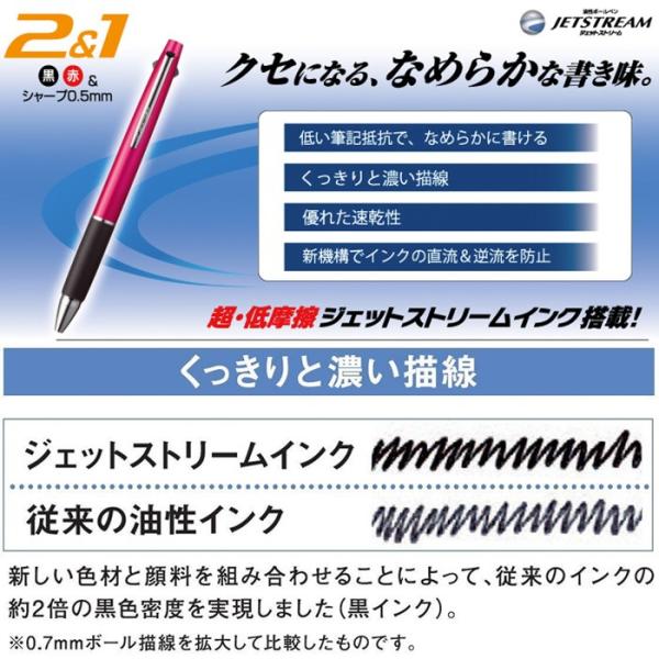 ジェットストリーム 2&1【0.5mm】速乾 ボールペン シャーペン 黒 赤 多機能ペン ビジネス オフィス JETSTREAM MSXE3-800