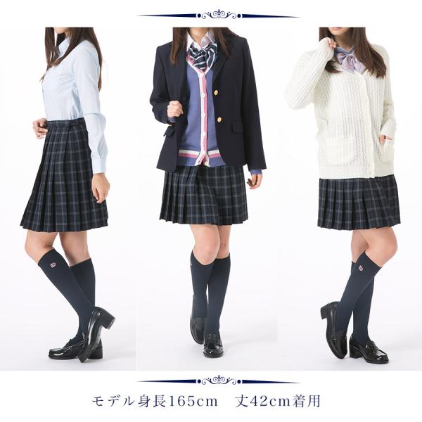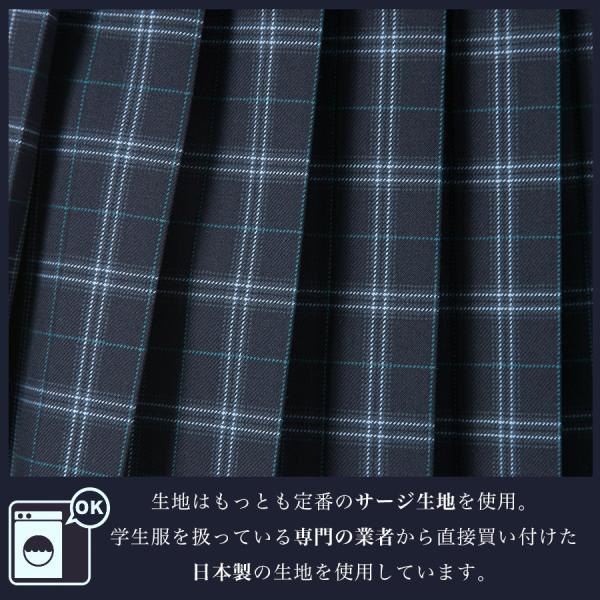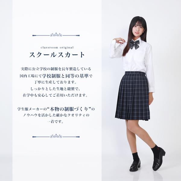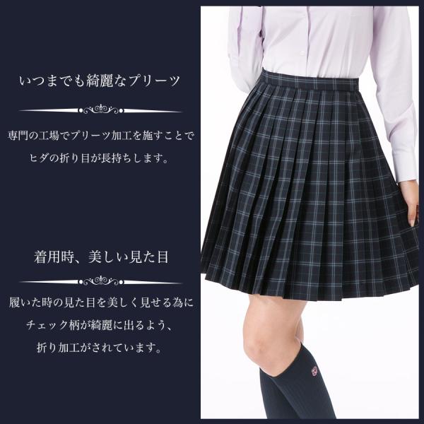 スクールスカート ネイビー系 ホワイトチェック柄 ひざ丈 膝上 日本製 アジャスター 学生 制服 高校生 プリーツスカート