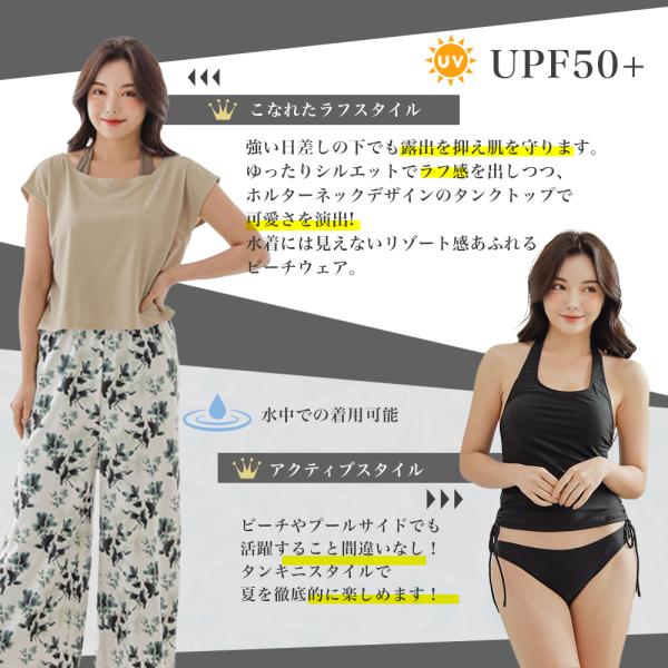 【SALE!】レディース水着 4点セット Tシャツ ロングパンツ タンキニ タンクトップ セパレート 体型カバー UPF50+ UV対策 速乾 ストレッチ 女性 女子