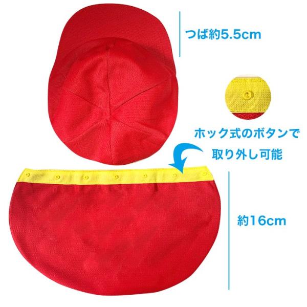 カラー帽子 裏面黄色 タレ付き/リムーバブル 男女兼用 運動 園児 子供 お散歩 外出 体育 熱中症対策 日よけ 黄 赤 ピンク 水色 青 黄緑 紫 UDK41-TR