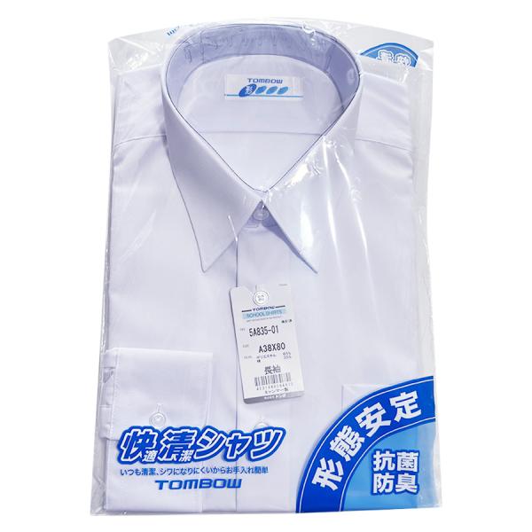 男子スクールシャツ トンボ 快適清潔シャツ A体 長袖 形態安定 抗菌防臭 ノーアイロン メンズ ワイシャツ 角衿 学生 制服 TOMBOW 5A835