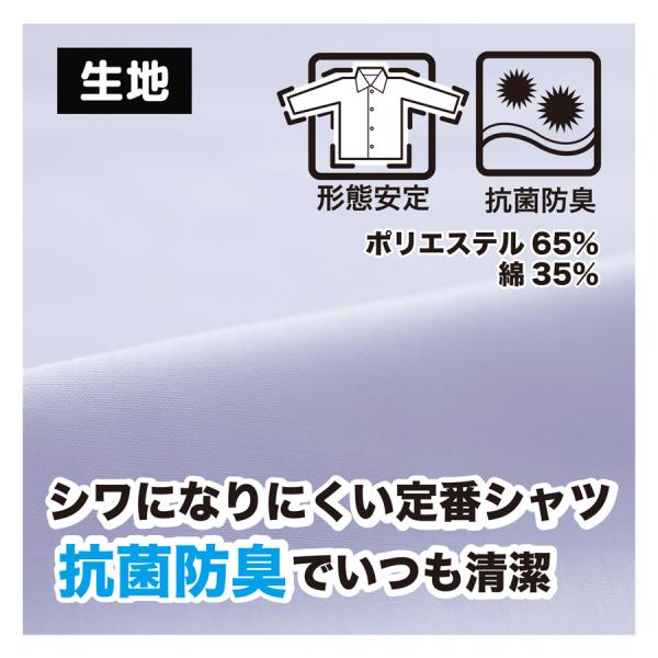 形態安定…ご家庭で洗濯のシワが残りにくく、ノリづけをしなくても綺麗に仕上げることができる、防縮性に優れた形態安定シャツです。ノーアイロンでも着用できますが、少しシワが残っても軽いアイロンがけで十分です