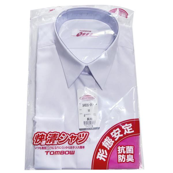 女子スクールシャツ トンボ 快適清潔シャツ A体 長袖 形態安定 抗菌防臭 ノーアイロン レディース ワイシャツ 角衿 学生 制服 TOMBOW 5K835