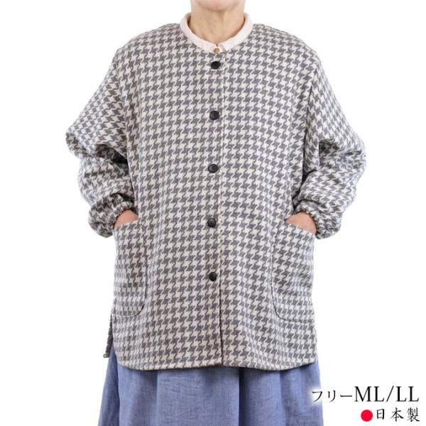 柄スモック 毛混 フリー(M〜L)/LL 前開き エプロン 割烹着 日本製 秋冬スモック 大人 シニア レディース 60代 70代 80代 90代 プレゼント