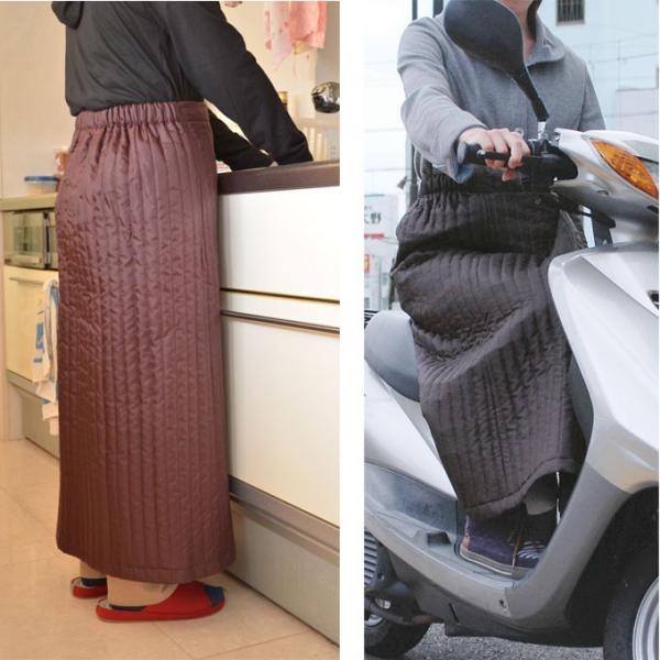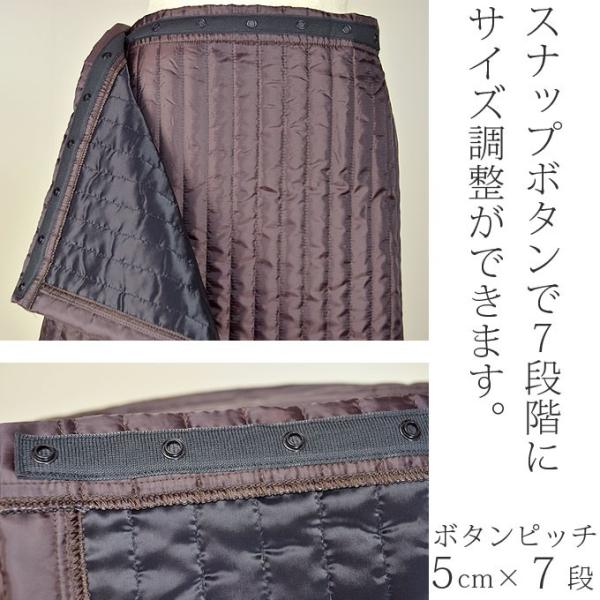 キルト巻きスカート防寒ロング 着丈86cm/81cm | 日本製 スナップボタン7段階サイズ調整 重ね着