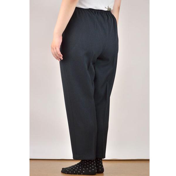 ウエスト総ゴムの日本製レディースパンツ。股上深めのゆったりしたシルエットで穿きやすいズボンです。