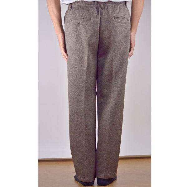 ウエストゴムの紳士用裏起毛パンツです。少し厚み感のある柔らかな風合いの生地で穿きやすく、裏起毛なので寒いシーズンの普段用に快適なズボンです。