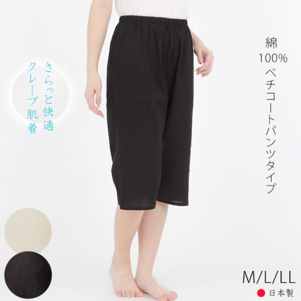 ペチコートパンツタイプ 綿100% ペチパン 6分丈 M/L/LL 日本製 クレープ肌着 アイボリー ブラック