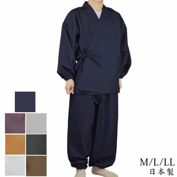 シワになりにくい作務衣 M/L/LL |日本製 秋冬春 黒 紺 白 紫 茶 灰